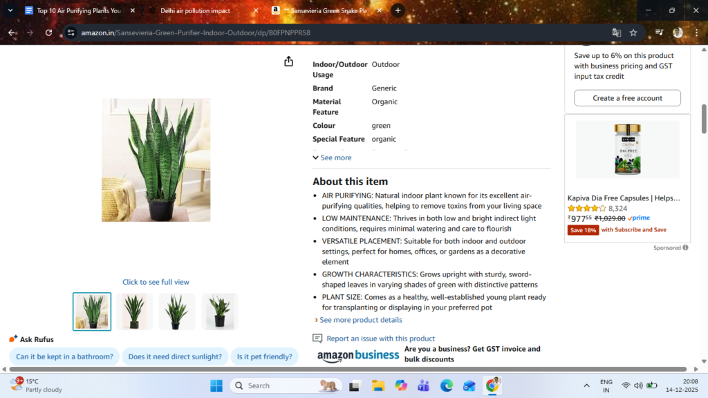 While air purifiers help, air purifying plants offer a natural, affordable, and culturally rooted solution that fits perfectly into Indian homes.